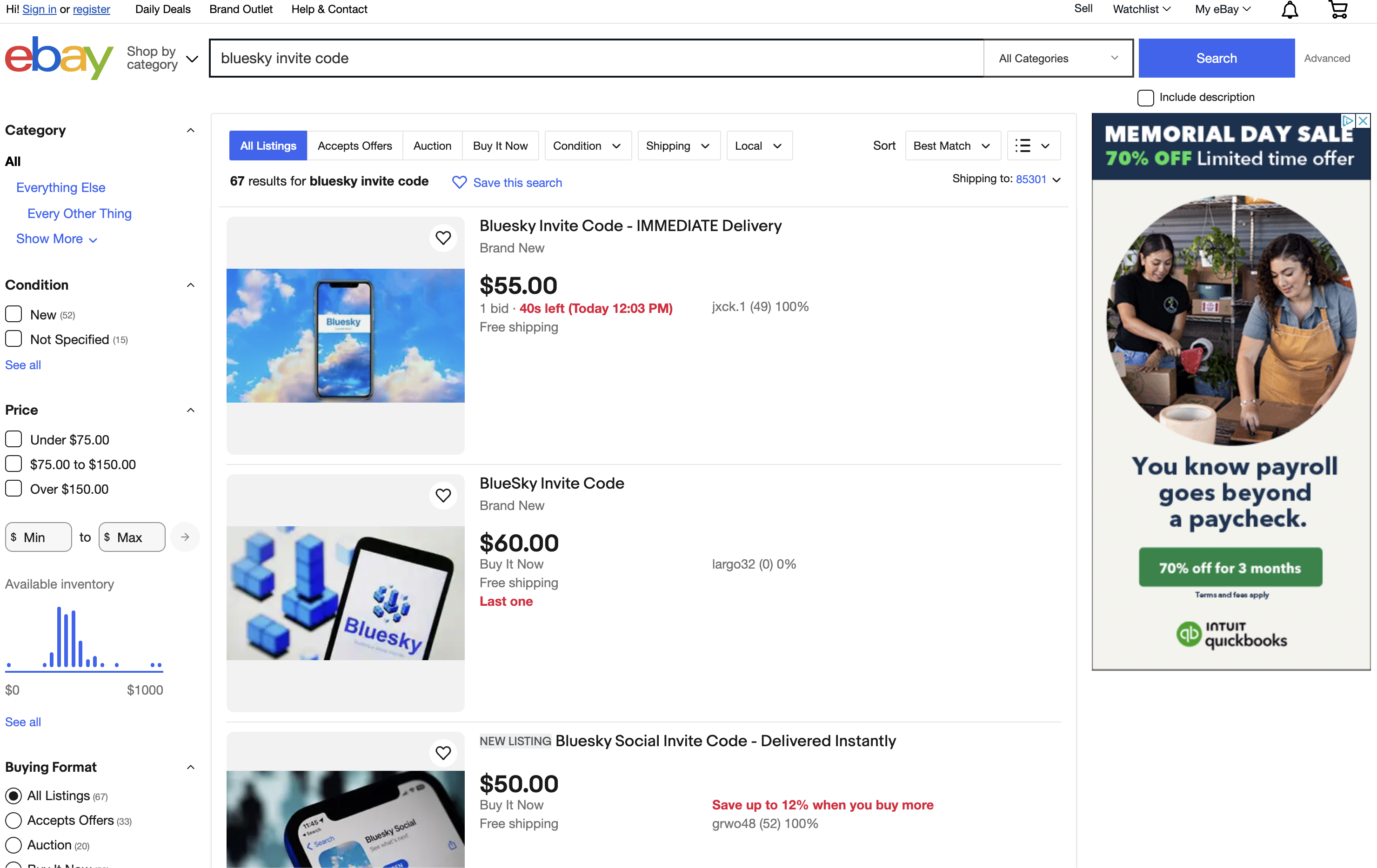 Screenshot from Twitter, May 2023You can even buy an invite code for Bluesky on eBay.